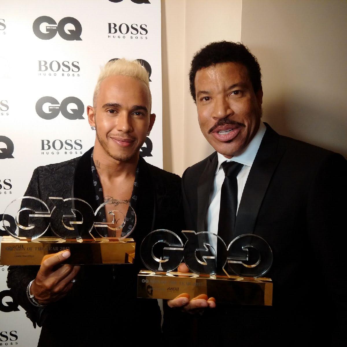 Lewis Hamilton tweeted: Congrats @LionelRichie on your #IconOfTheYearAward! Honour hanging out with you last night! #LEGEND #MOTY #GQAwards