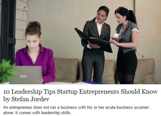 10 LEADERSHIP TIPS STARTUP ENTREPRENEURS SHOULD KNOW by: Stefan Jordev