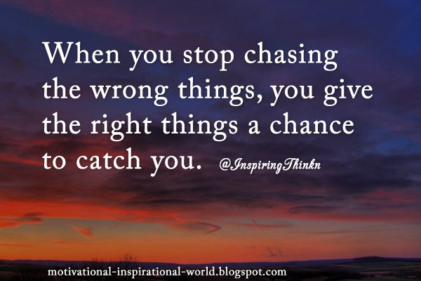 : When you stop chasing the wrong things, you give the right things a chance to catch you.