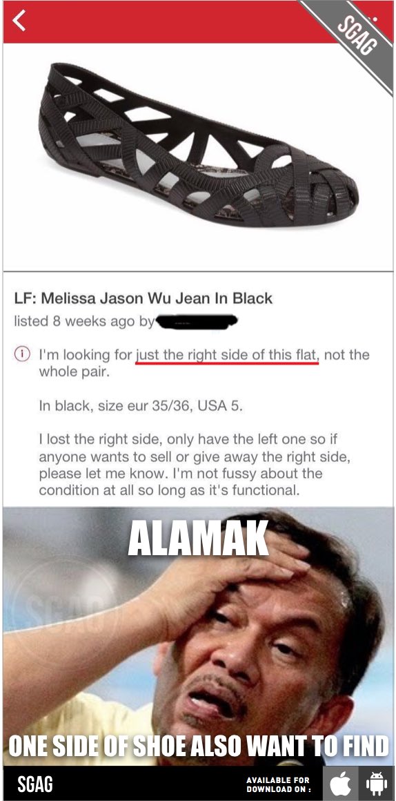 Mr. SGAG tweeted: Must be same size same colour some more... Girl I think you buy new one better la 😂😂😂